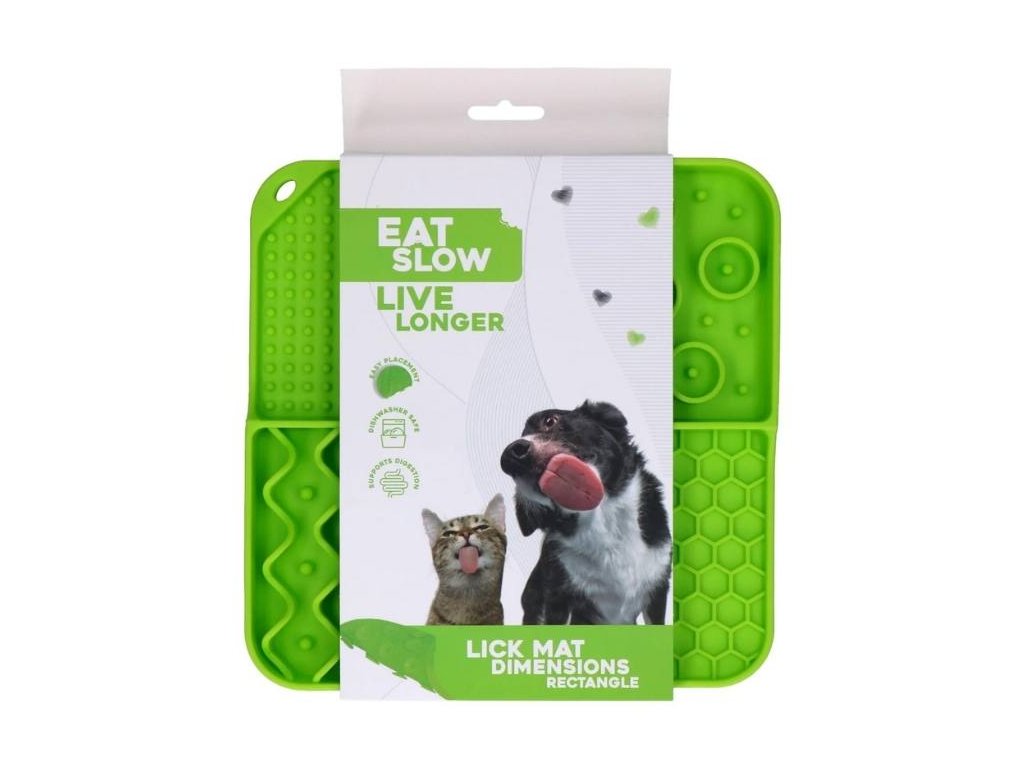 Lízací podložka EAT SLOW LIVE LONGER Rectangle zelená 21x21cm