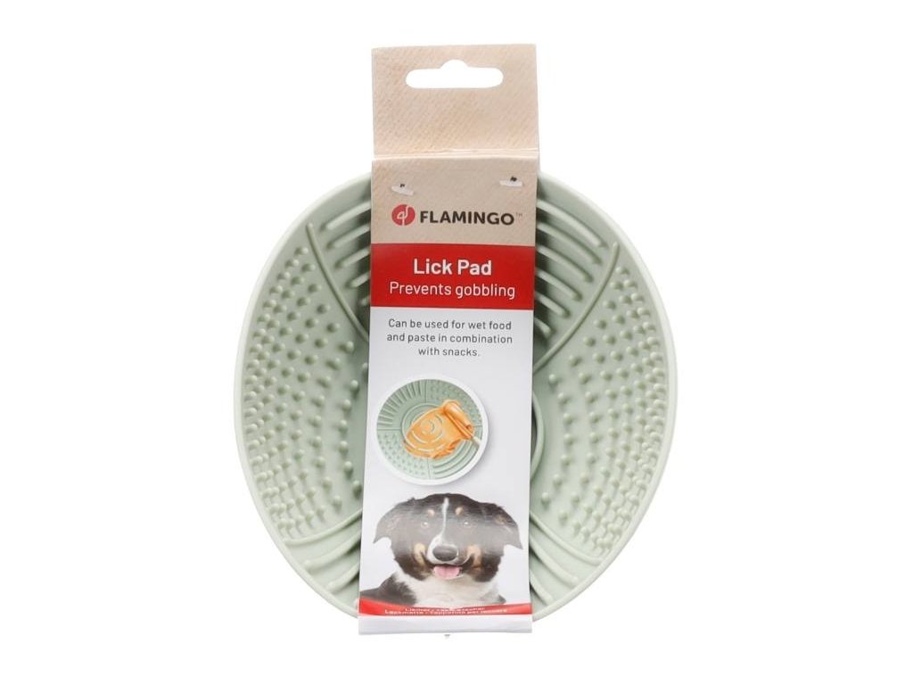 Lízací podložka/miska FLAMINGO Laslo kulatá silikonová světle zelená 16,5x6x5,5cm