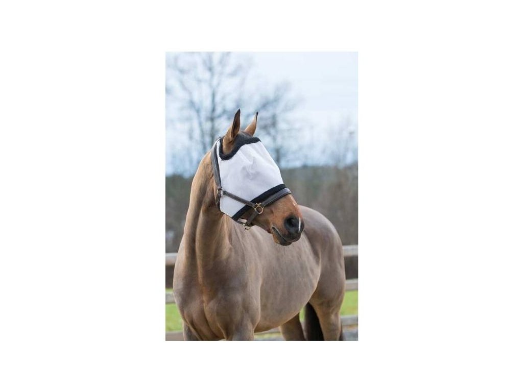 Je vyrobená z velmi odolného síťovaného materiálu. Chrání spolehlivě citlivou oblast očí a snižuje působení slunečního záření. Díky většímu výřezu kolem uší je maska ideální i pro koně, kteří nemají rádi jejich překrytí. Nesíťované části jsou vyrobené z extra měkkého, lehkého a prodyšného funkčního materiálu (nylon a polyester), který je mírně elastický pro dostatečnou volnost pohybu. Nesíťovaný materiál je extra měkký, aby nedocházelo k odírání