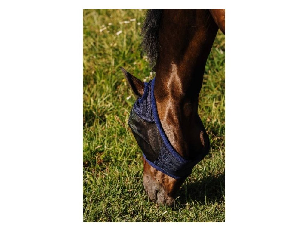 Tato odolná a prodyšná maska proti hmyzu je bez ochrany uší, díky čemuž je vhodná pro koně, kteří nesnášejí látku na uších.