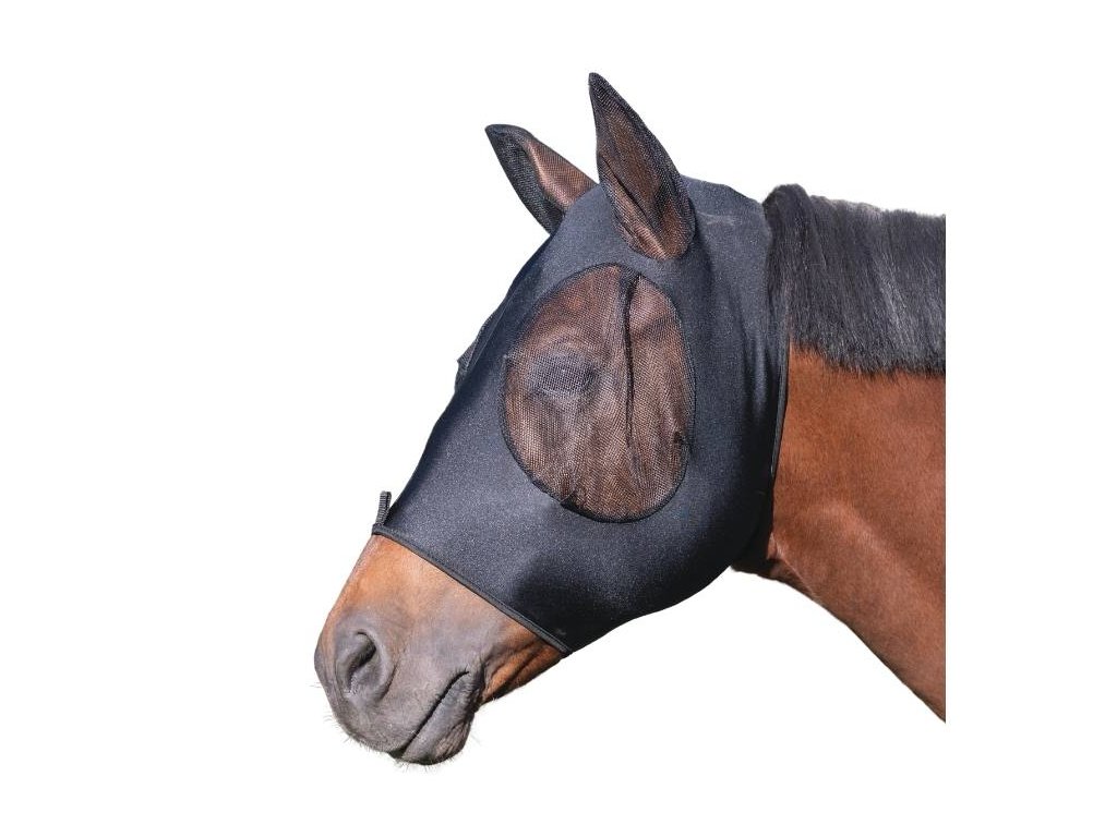 Maska se snadno přetahuje přes hlavu koně a nabízí optimální přizpůsobení.