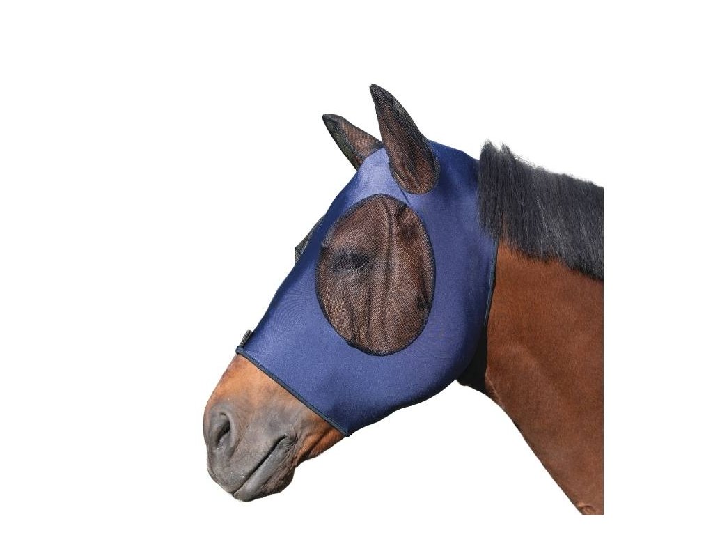 Maska se snadno přetahuje přes hlavu koně a nabízí optimální přizpůsobení.