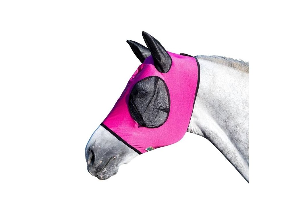 Maska se snadno přetahuje přes hlavu koně a nabízí optimální přizpůsobení.