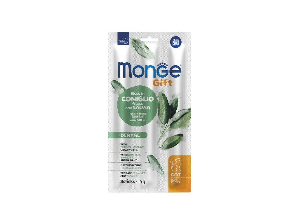 MONGE Gift Cat jemné dentální tyčinky s králíkem a šlavějí 15g