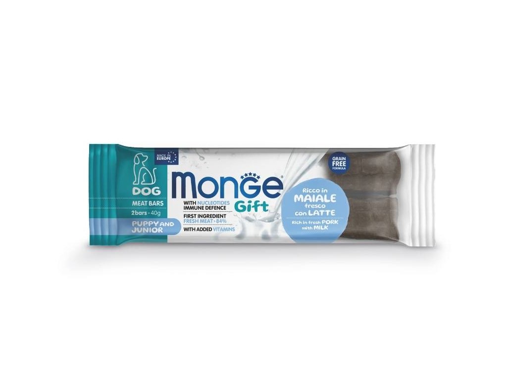 MONGE Gift Dog Puppy&Junor masové tyčinky s vepřovým masem, mlékem a nukleotidy 40g