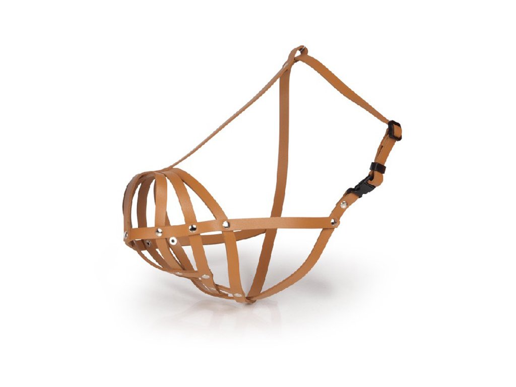 - kožený náhubek s kvalitní umělohmotnou sponou