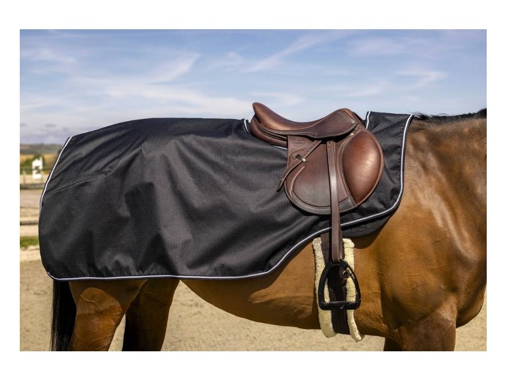 Nepromokavá bederní deka EQUITHEME Tyrex 600D s fleece černá 125cm