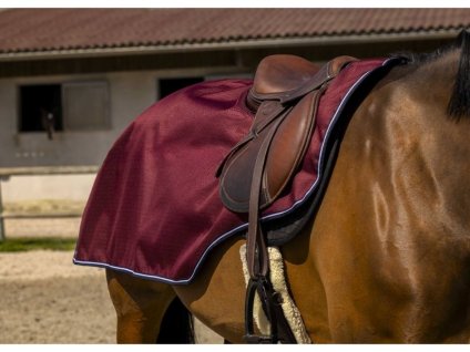 Nepromokavá bederní deka EQUITHEME Tyrex 600D s fleecem švestková 140cm