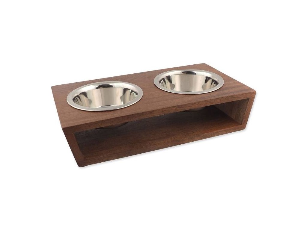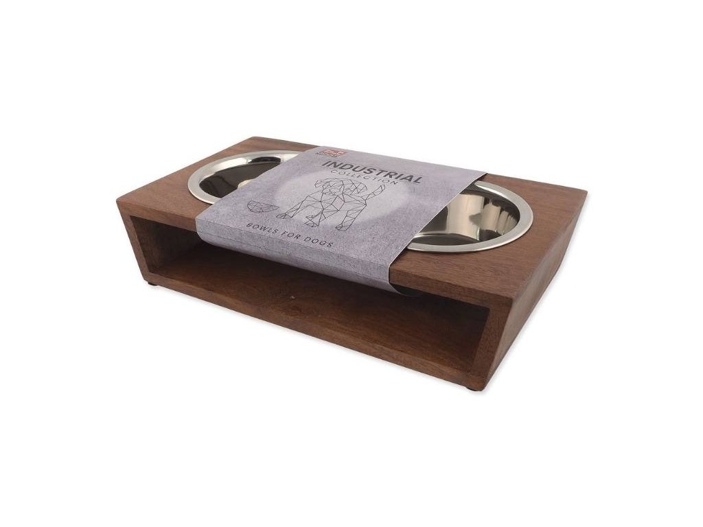- sada dvou nerezových misek v elegantním dřevěném stojánku pro psy