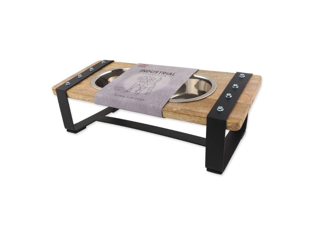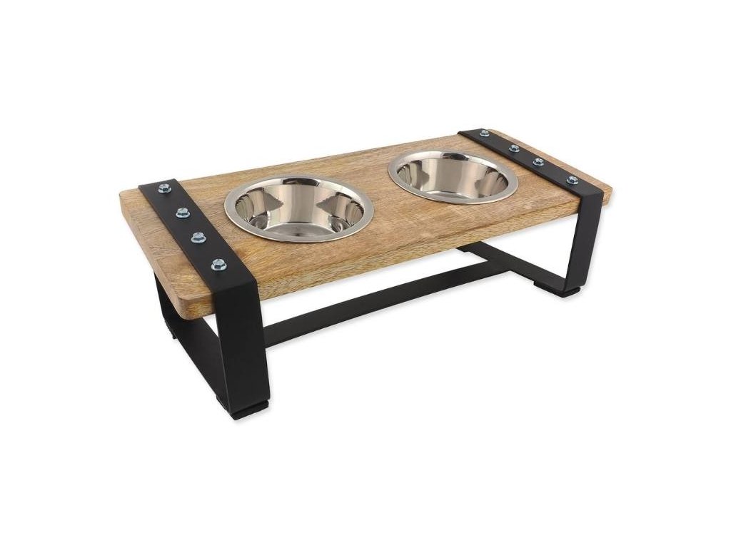 - sada dvou nerezových misek v elegantním dřevěném stojánku pro psy