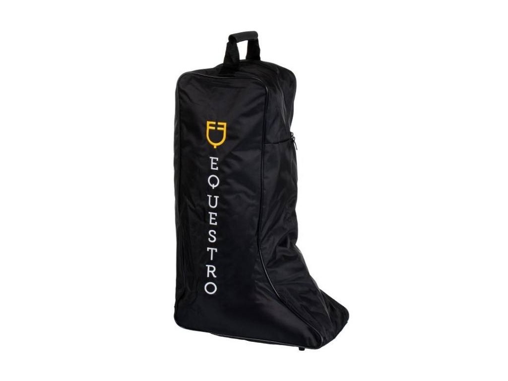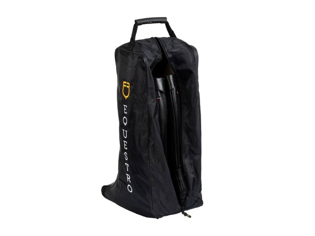 Taška na jezdecké boty vyrobená z vodoodpudivého polyesteru se zapínáním na zip, která účinně chrání před nečistotami a prachem. Je vybavena pohodlným uchem s gumovou podšívkou pro snadné přenášení. Zesílené dno a okraje pomáhají tašce udržet tvar. Boky zdobí logo a nápis Equestro.