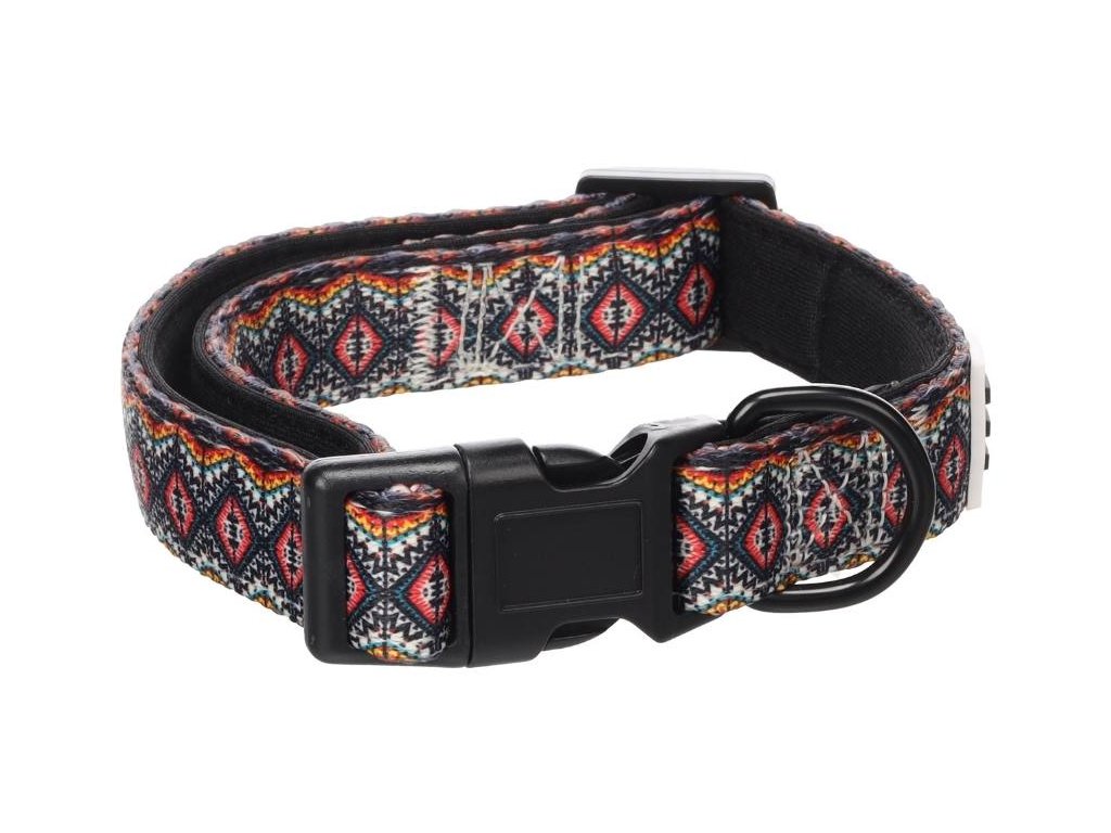 Obojek FLAMINGO Canggu s neoprenem modrý s etno vzorem (XS) 2x22-30cm