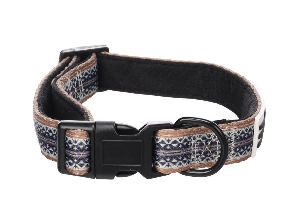Obojek FLAMINGO Ubud s neoprenem černý s etno vzorem (L) 2,5x41-66cm