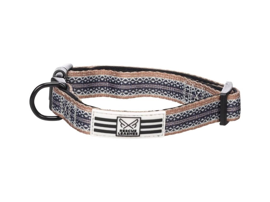 Obojek FLAMINGO Ubud s neoprenem černý s etno vzorem (S) 2x28-43cm