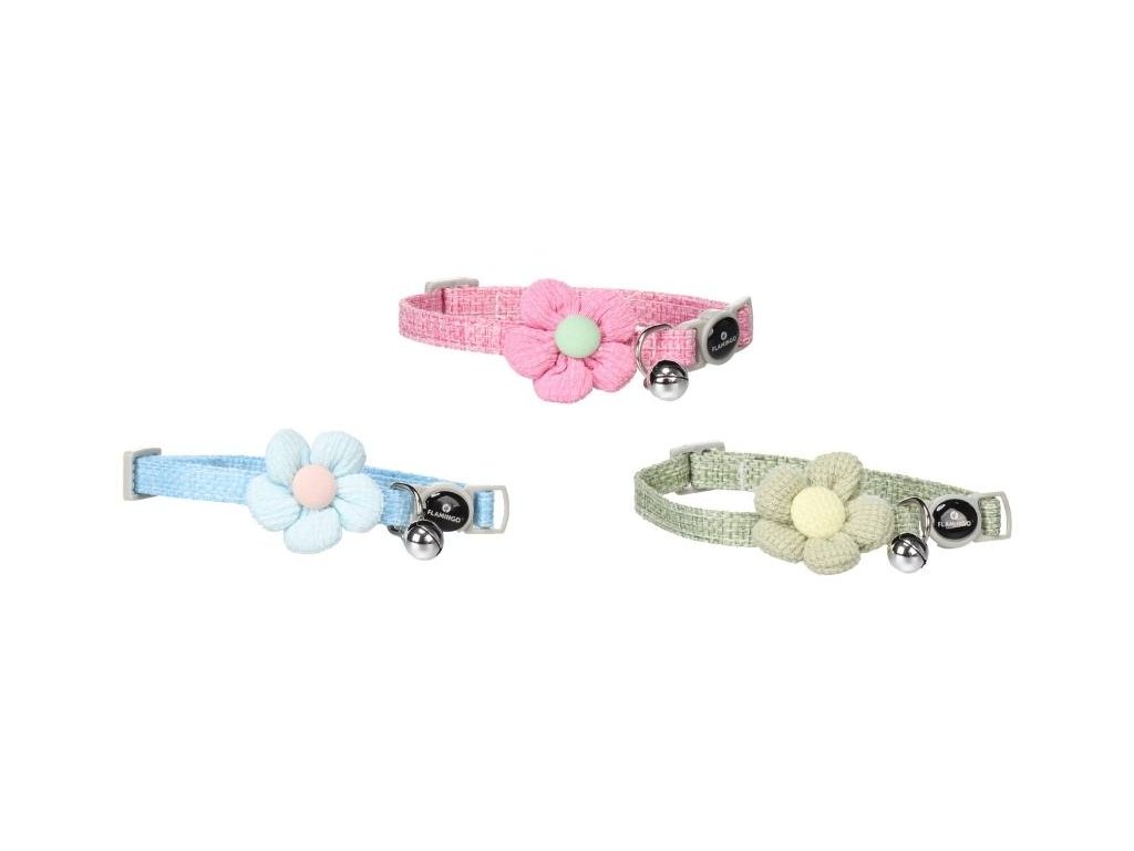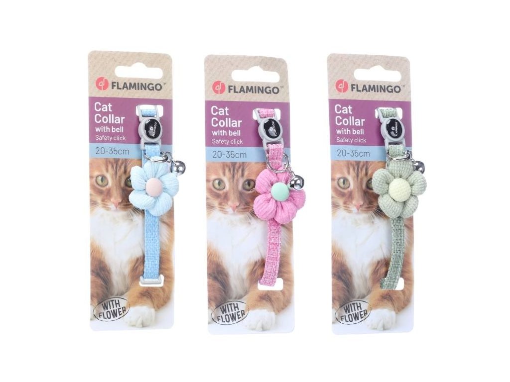 Obojek pro kočku FLAMINGO Maya s květinou 1,5x20-35cm (MIX BAREV)
