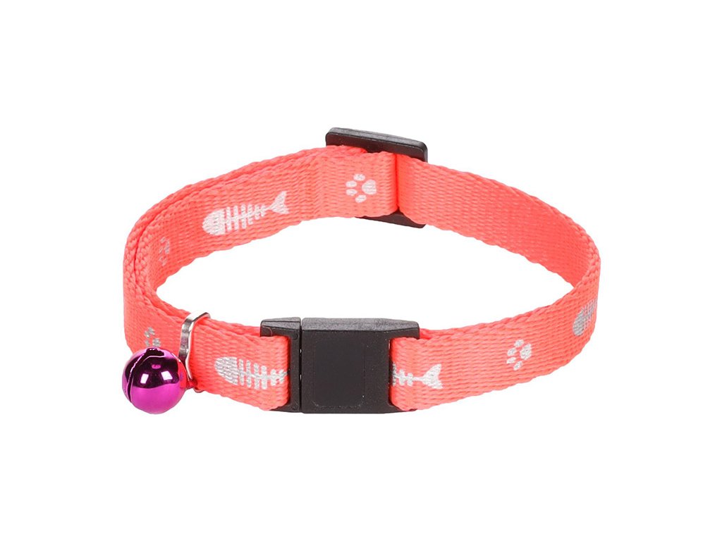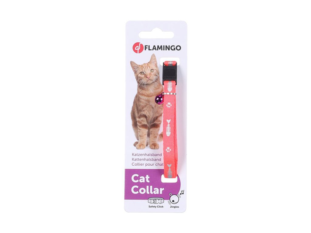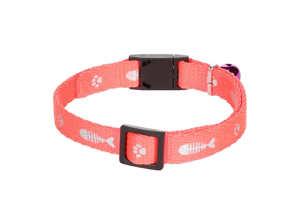 Obojek pro kočky FLAMINGO Ziggi růžový s kostrou ryby a tlapkou 20-35x1cm (s rolničkou)