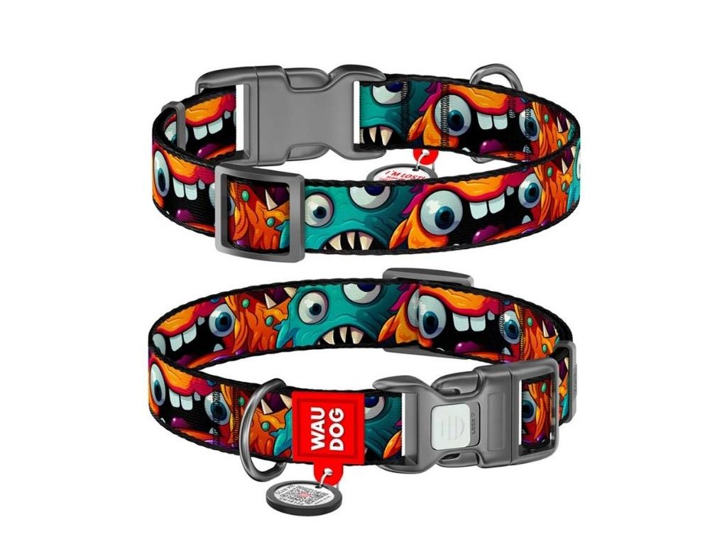 Obojek WAUDOG nylonový Příšerky (M) 28-40cm