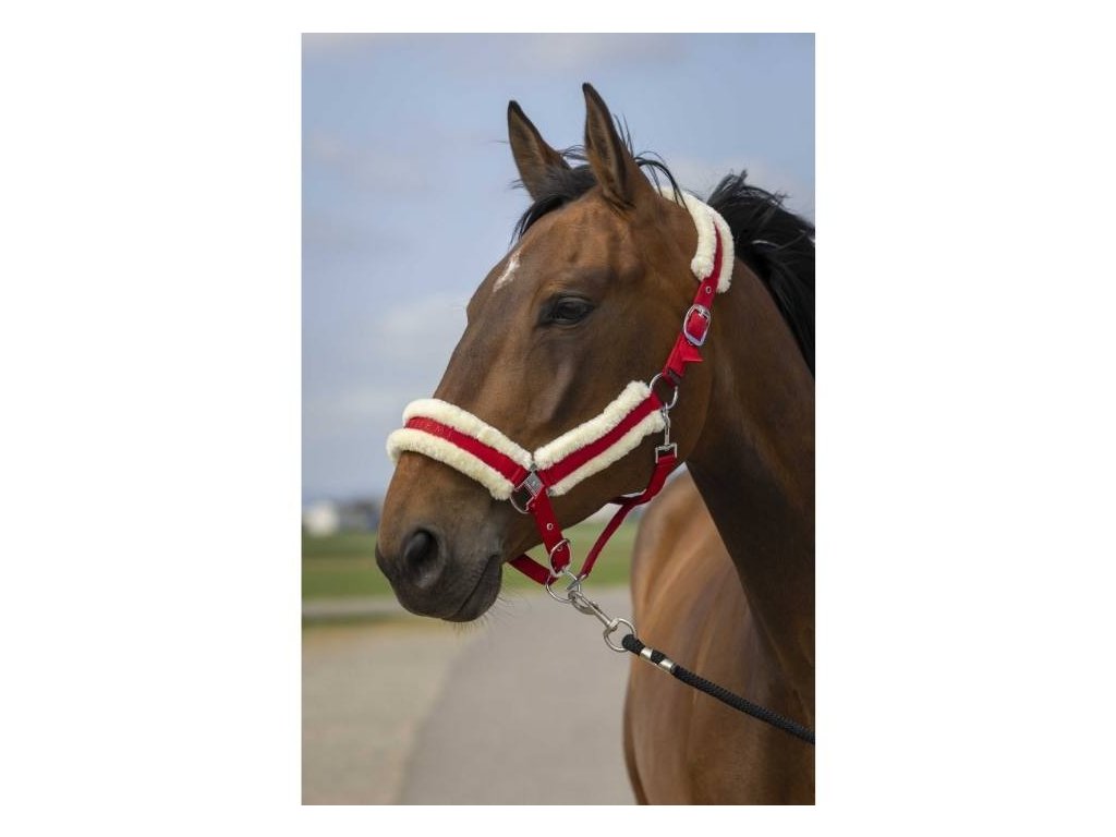 Ohlávka EQUITHEME Nylon Mouton red/white COB