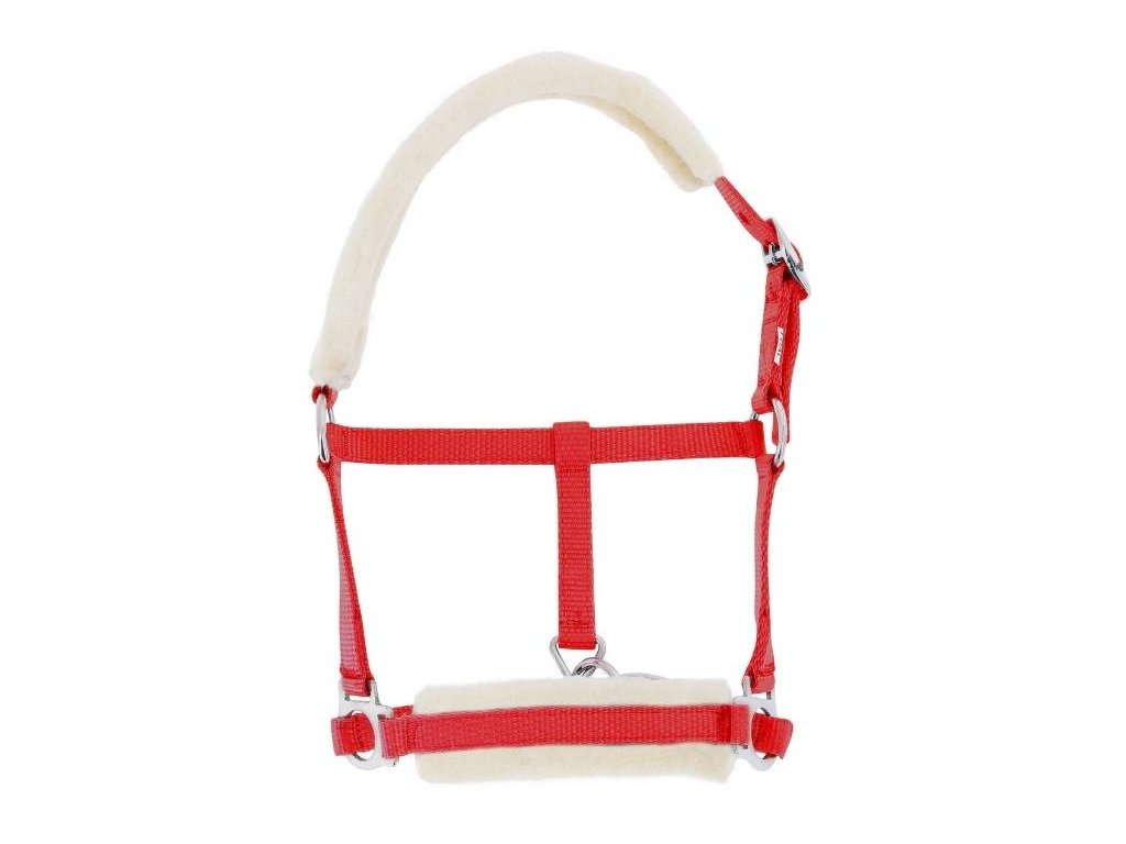 Ohlávka pro hříbata RIDING WORLD s beránkem červená