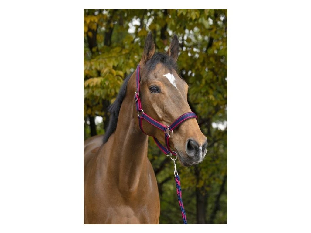 Ohlávka s vodítkem EQUITHEME Satiné navy blue/fuchsia FULL