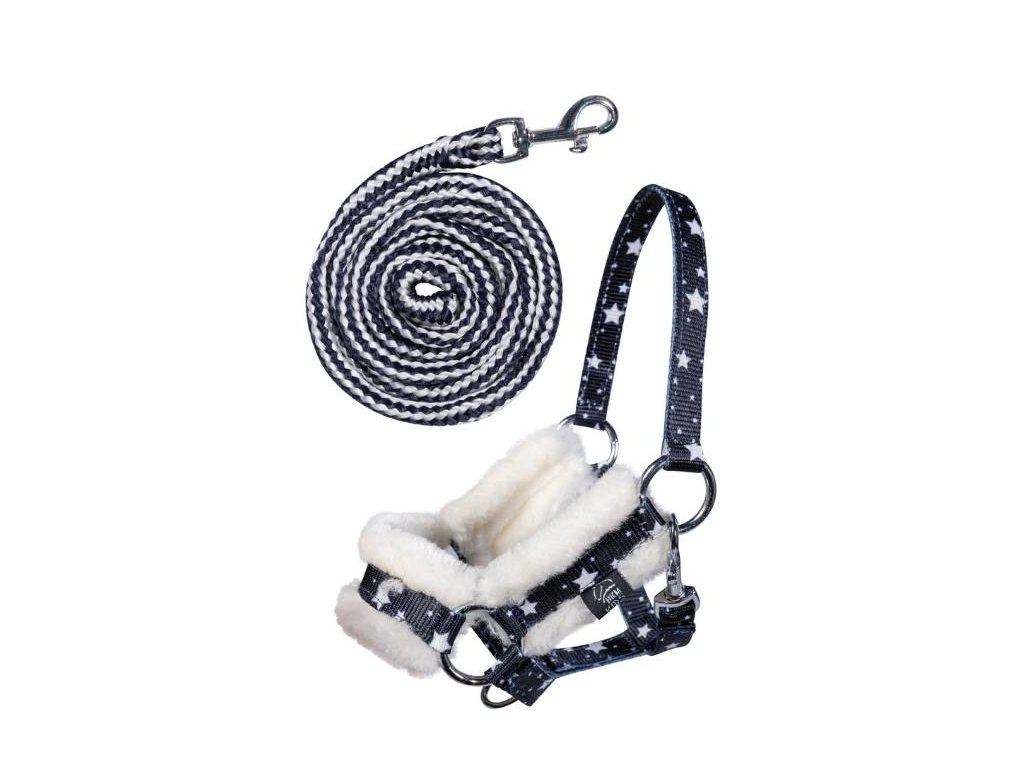 Ohlávka s vodítkem HKM pro Hobby Horse navy blue stars