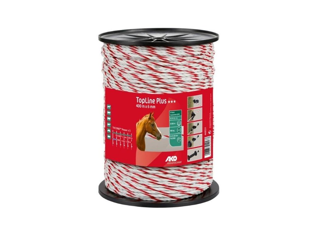 Ohradníkové lanko AKO TopLine Plus bílé/červené 6mm/400m
