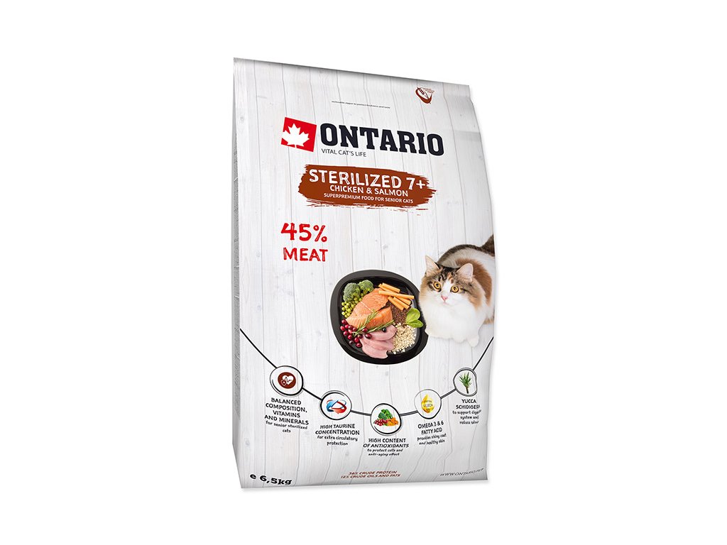 ONTARIO Cat Fresh Meat Sterilized 7+ Chicken & Salmon 6,5kg