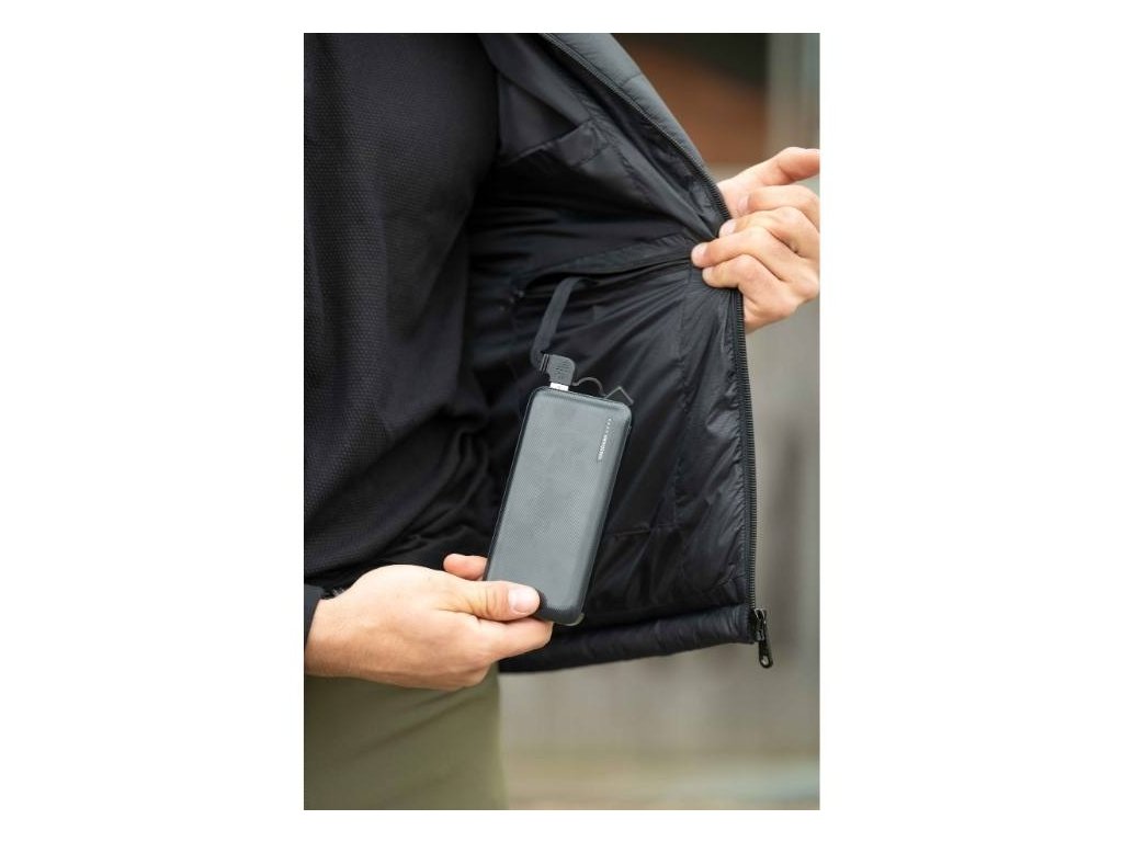 Powerbanka o výkonu 5000mA zajistí vyhřívání až na 4 hodiny. Vyhřívání se jednoduše ovládá pomocí tlačítka na vnější straně vesty.