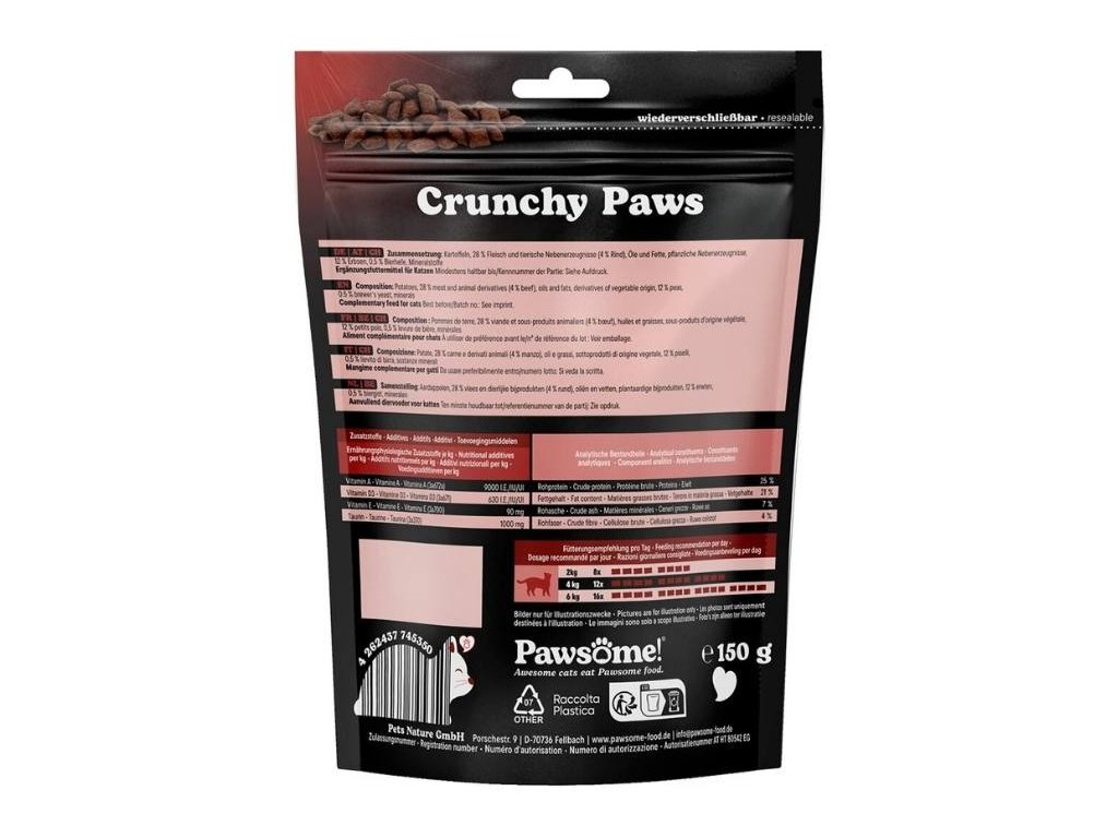 PAWSOME Crunchy Paws s hovězím masem 150g