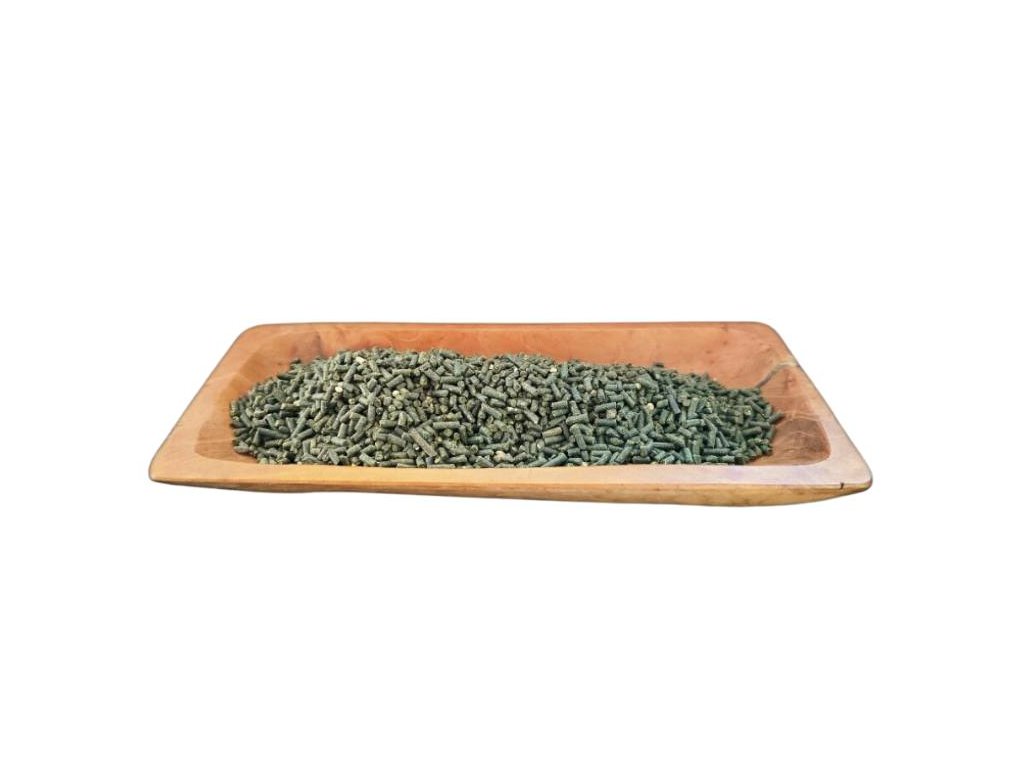 SLOŽENÍ: vojtěškové výlisky, konopí, výlisky z plodů arónie, semeno ostropestřce, pivovarské kvasnice, Spirulina, semeno pískavice, L-lyzin monohydrochlorid, lithothamnium, oxid hořečnatý, řepkový olej, DL-methionin, Kelpa, chlorid sodný, dihydrogenfosforečnan vápenatý, L-threonin, L-tryptofan, premix
