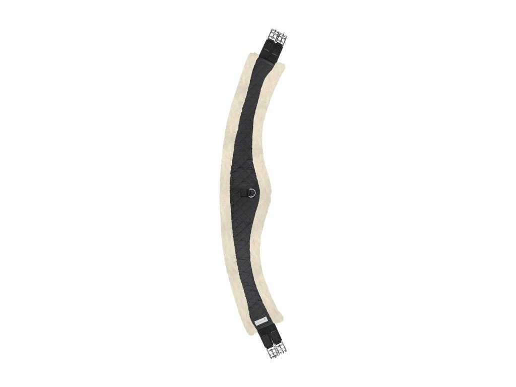Dlouhý podbřišník s měkkou podšívkou ze syntetické kožešiny. Díky svému tvaru je ideální pro koně s kulatějším břichem a pomáhá zabránit posouvání sedla dopředu. S nerezovými přezkami a kroužkem pro pomocné otěže. Bez elastického zakončení.