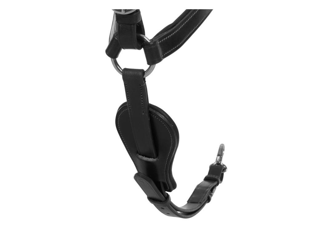 Luxusní anatomicky tvarovaný poprsník z italské telecí kůže fixuje sedlo na koni v pěti bodech.