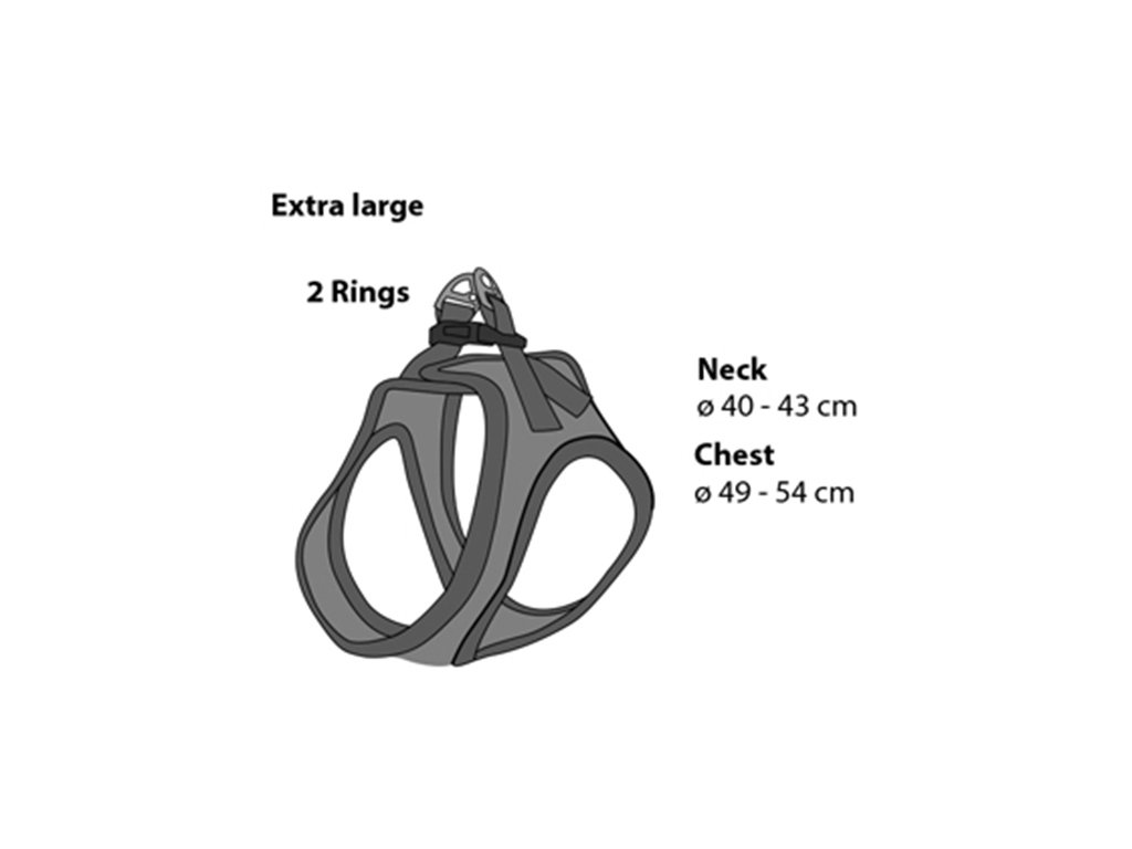 NÁŠ TIP: Pro zvolení správné velikosti postroje změřte obvod hrudníku pejska za předními nohami (měřte vždy měkkým krejčovským metrem). Míry uvedené u postroje (např. 49 - 54 cm) značí obvod hrudního pásu postroje. Pokud má tedy váš pejsek obvod hrudníku např. 44 cm, zvolte velikost 42 - 46 cm.