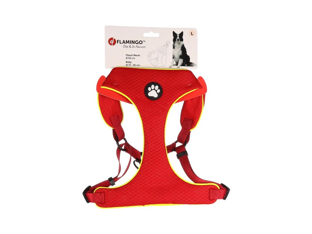 Postroj FLAMINGO Tasha Step & Go červený (L) 58x75-95x2cm
