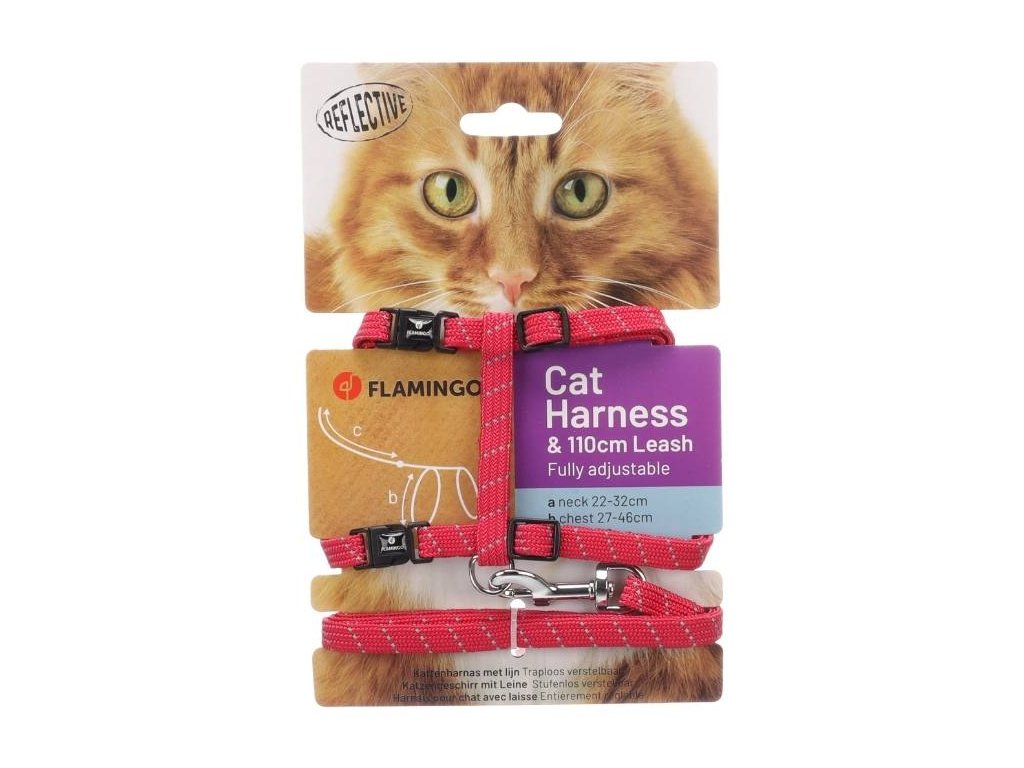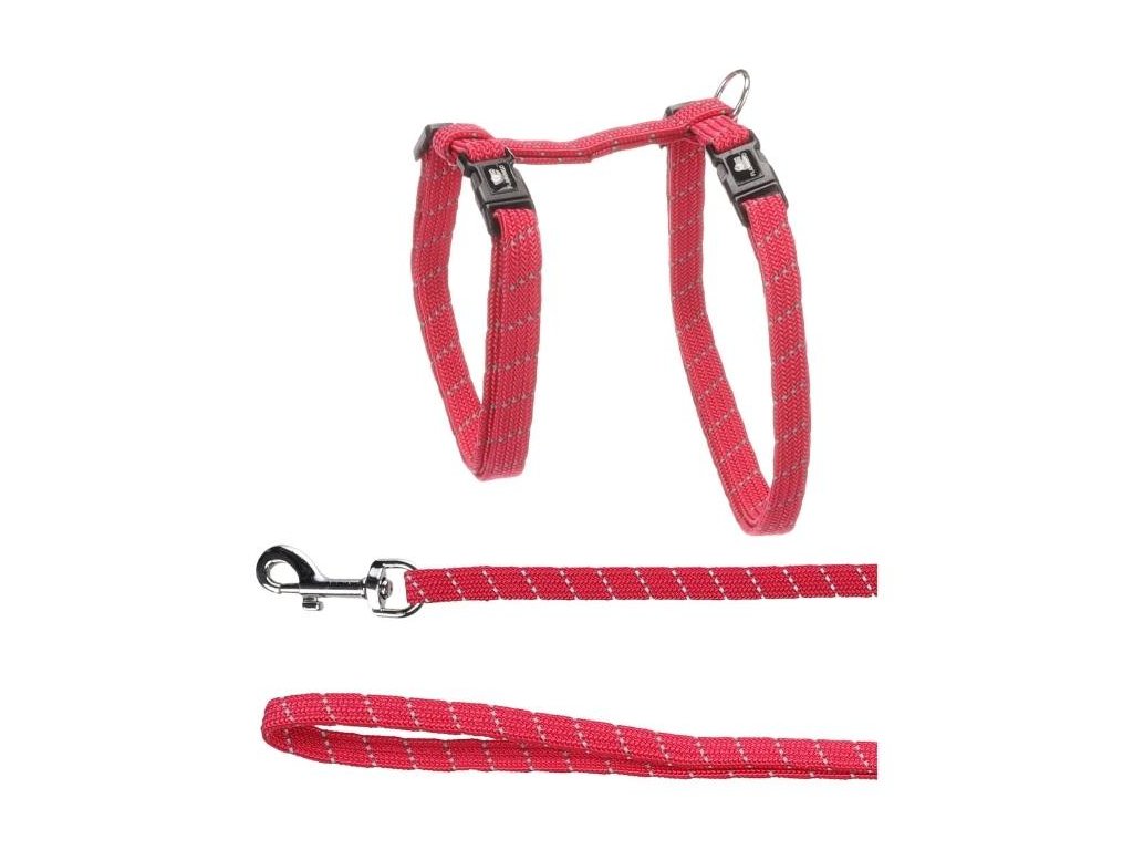 Postroj s vodítkem na kočku FLAMINGO Elza Coral červený 22-32x27-46cm