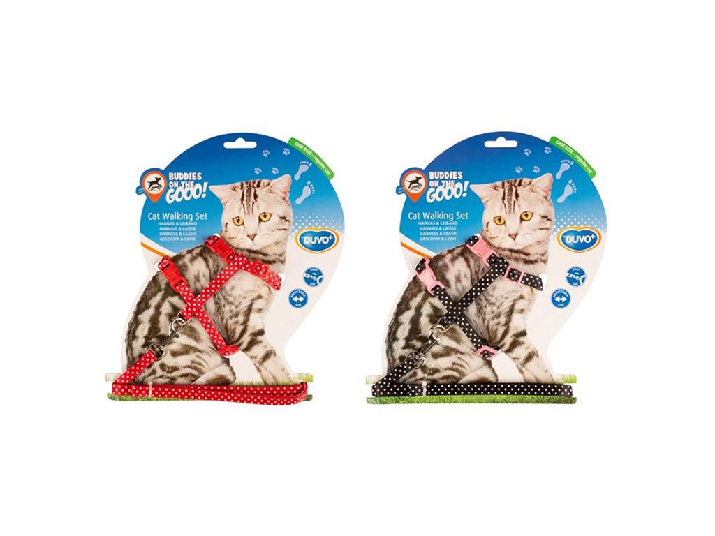 Postroj s vodítkem pro kočku DUVO+ s puntíky 1x20-35cm(MIX BAREV)