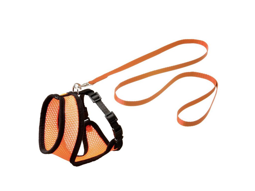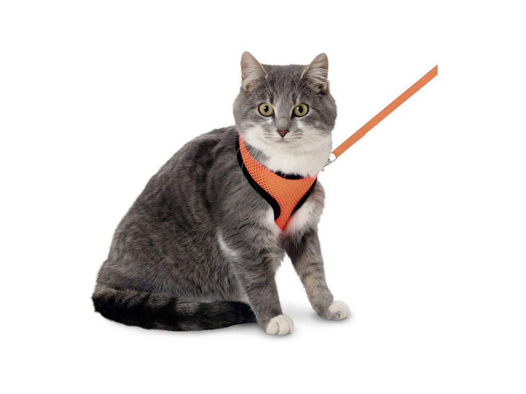 Postroj s vodítkem pro kočku FLAMINGO Harms (M) oranžovočerný 1x110cm