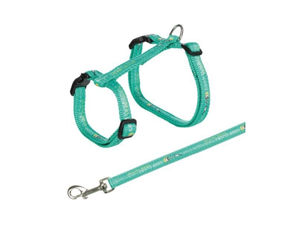 Postroj s vodítkem pro kočku TRIXIE s motivem Good Luck (XL) 34-57x1,3cm (MIX BAREV)