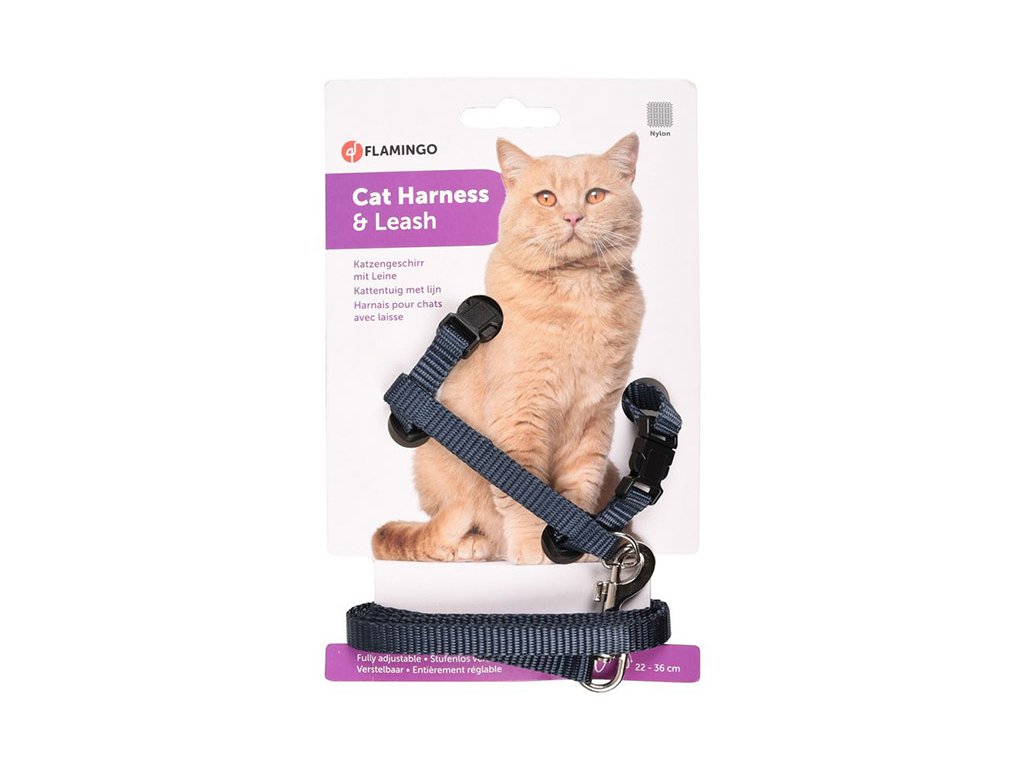 Postroj s vodítkem pro kočky FLAMINGO Ziggi granit modrý 22-36x1x110cm