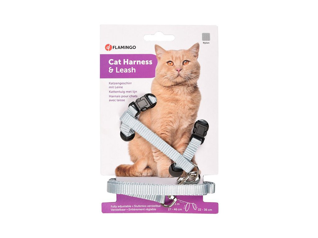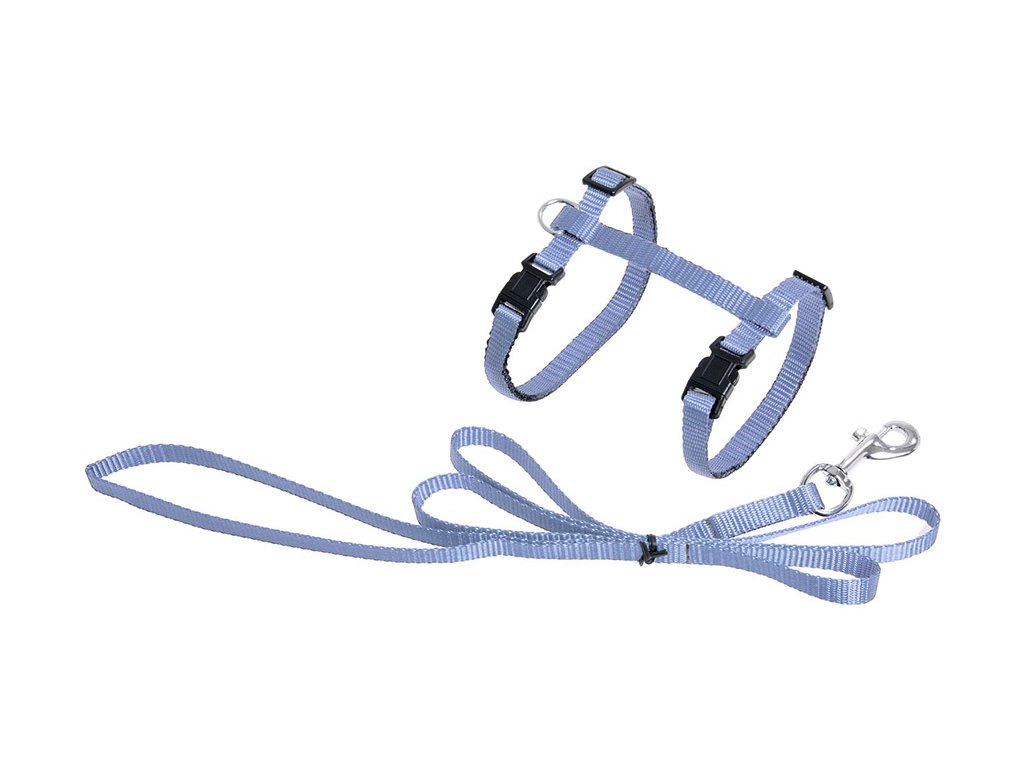 Postroj s vodítkem pro kočky FLAMINGO Ziggi světle modrý 22-36x1x110cm