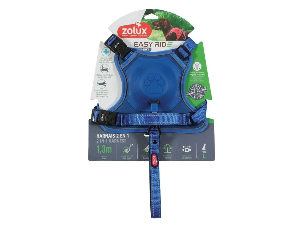 Postroj se samonavíjecím vodítkem ZOLUX Easy Ride modrý (L)