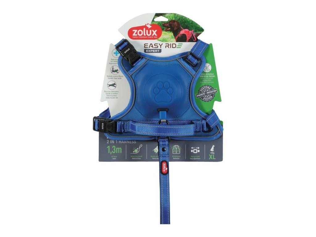 Postroj se samonavíjecím vodítkem ZOLUX Easy Ride modrý (XL)