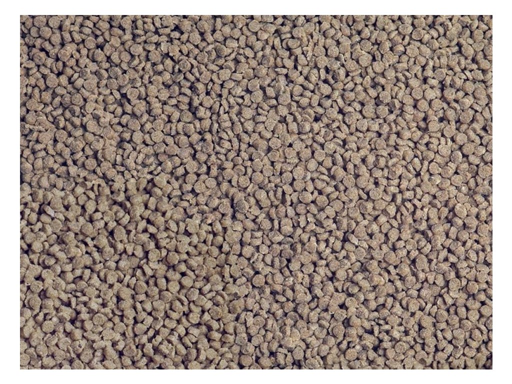 SLOŽENÍ: rybí moučka, kukuřičný škrob, pšeničný lepek, pšeničná mouka, pšeničné klíčky, moučka z krillu (4 %), rybí tuk (4 %), moučka z gammarusu, Mannan-oligosacharid, pivní kvasnice, masová moučka ze slávek zelenoústých, řasy Haematococcus, česnek