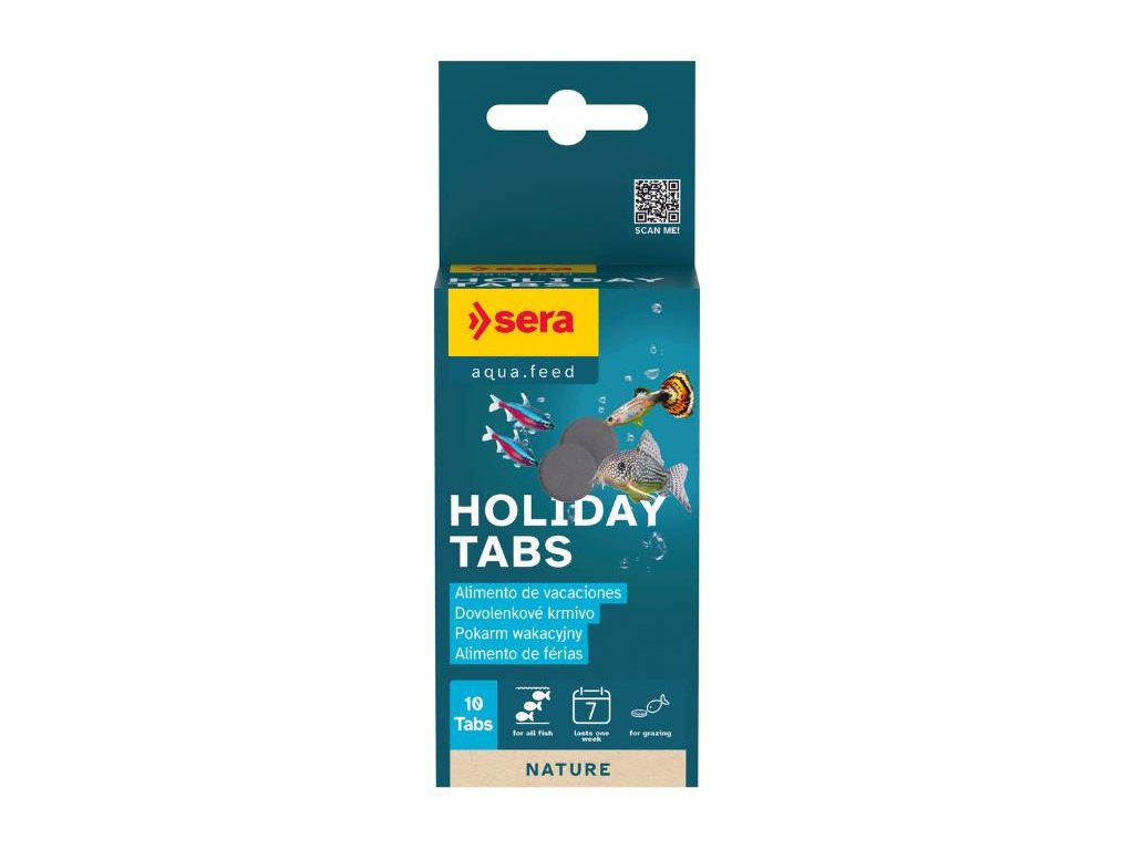 NÁVOD K POUŽITÍ: Pár dní před vaším odchodem do štěrku akvária umístěte tabletu Sera Holiday, aby si na ní ryby zvykly. V den odchodu pak nakrmte ryby krmivem, na které jsou ryby běžně zvyklé a navíc umístěte na přístupné místo tablety Sera Holiday dle letáku v krabičce. Za 24 hodin by měly vaše ryby začít konzumovat tablety.