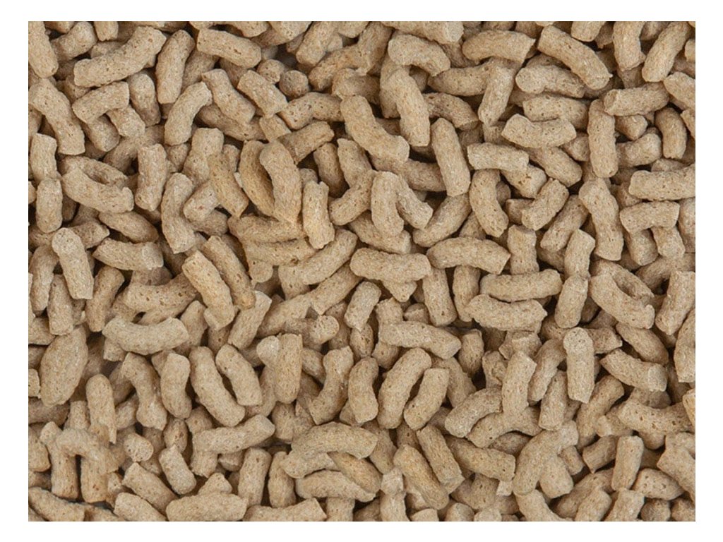 SLOŽENÍ: pšeničná mouka, kukuřičný škrob, pšeničný lepek, rybí moučka, moučka z hmyzu (Hermetia illucens) (4 %), moučka z krillu (4 %), pivní kvasnice, rybí tuk, pšeničné klíčky, Mannan-oligosacharid (0,4 %), masová moučka ze slávek zelenoústých, řasy Haematococcus, česnek