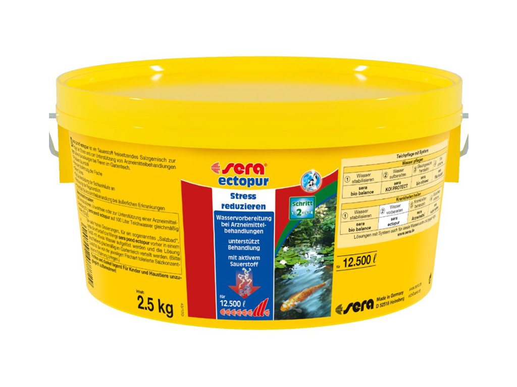 NÁVOD K POUŽITÍ: Při stresových situacích a nepohodě nebo pro podporu ošetření léčivými prostředky posypte hladinu stejnoměrně 20 g sera pond ectopur na 100 litrů vody (0,2 g/l). Při vysokém dávkování, tzv. “solná lázeň”, je třeba potřebné množství sera pond ectopur nejdříve rozpustit v nádobě s trochou vody a následně roztok promíchat rovnoměrně do jezírka. (Nejdříve si zjistěte koncentraci soli, kterou snáší jednotlivé druhy ryb, jichž se to týká.)