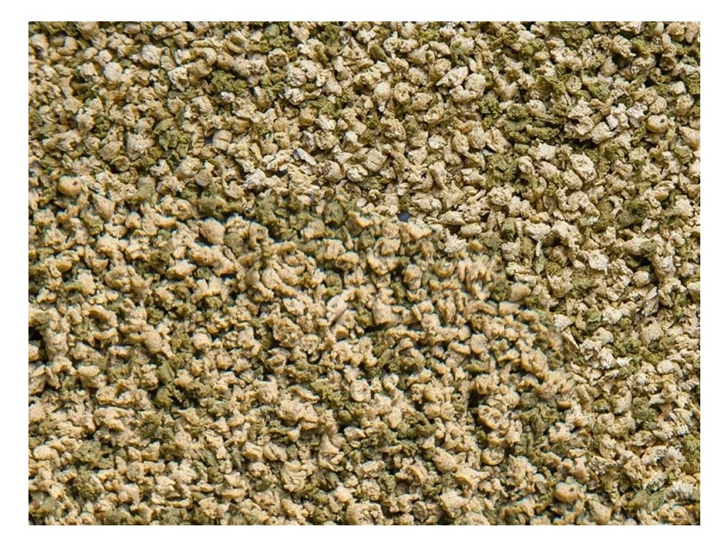 SLOŽENÍ: kukuřičný škrob, pšeničný lepek, rybí moučka, vaječný prášek, kasein (sýrovina), moučka z hmyzu (Hermetia illucens) (4 %), pšeničná mouka, rybí tuk, pivní kvasnice, spirulina, pšeničné klíčky, vojtěška, kopřivy, moučka z gammarusu, petržel, Mannan-oligosacharid (0,4 %), moučka z mořských řas, paprika, řasy Haematococcus, špenát, karoten, masová moučka ze slávek zelenoústých, semena pískavice řeckého sena, semena fenyklu, semena anýzu, česnek