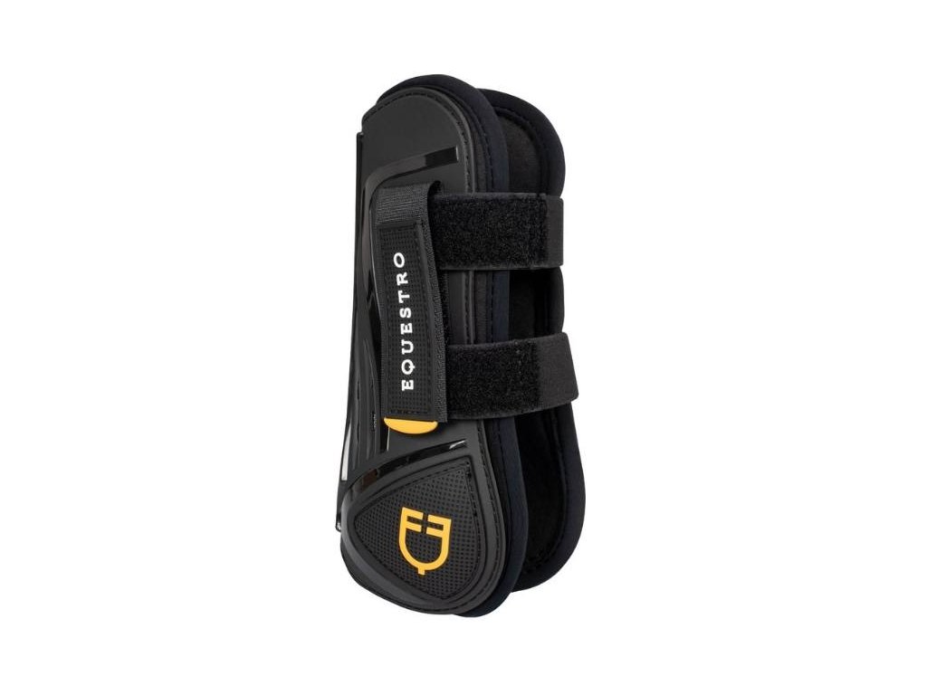 Tyto šlachové chrániče jsou ideální volbou pro jezdce, kteří hledají maximální ochranu a pohodlí při každodenním tréninku i na závodech. Jsou vyrobeny z lehké a mimořádně odolné TPU skořepiny se zesílenou zadní částí a polstrováním z vysoce prodyšného neoprenu, které je navrženo tak, aby předcházelo odírání. Chytré ventilační otvory zabraňují přehřívání nohou a šlach a přispívají k pohodlí koně během zátěže. Díky dvojitému zapínání na suchý zip se kamaše snadno přizpůsobí a pevně drží. Elegantní design doplňuje logo a nápis Equestro.