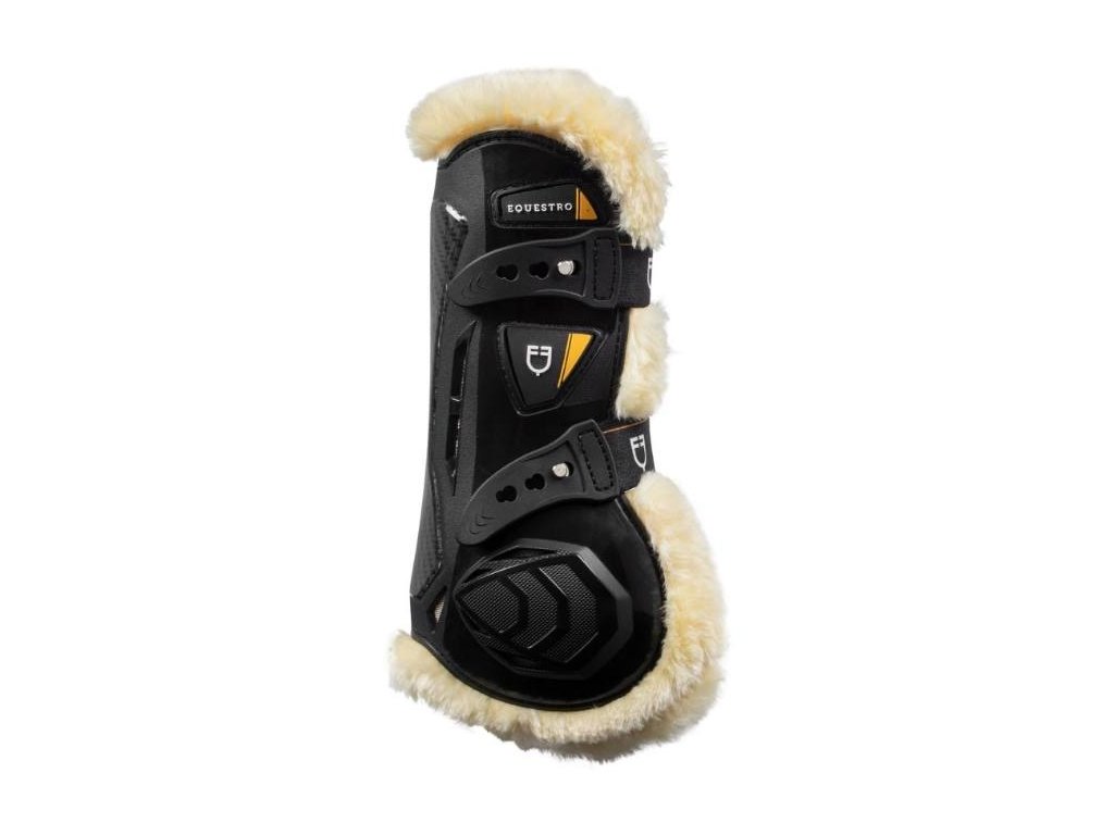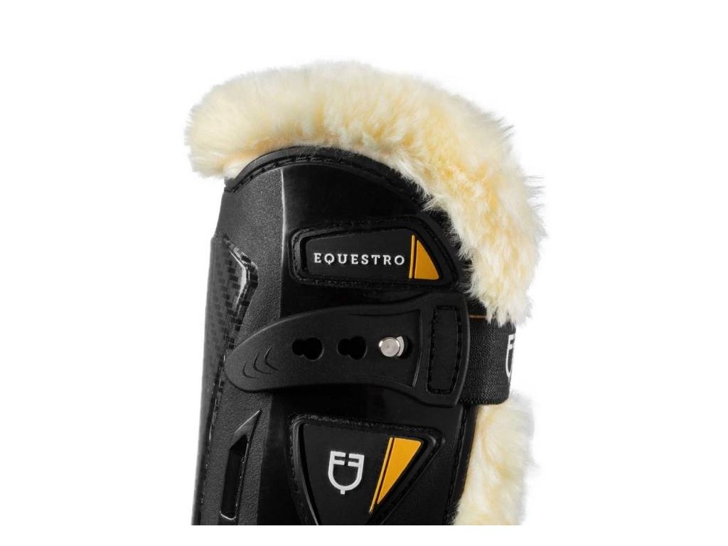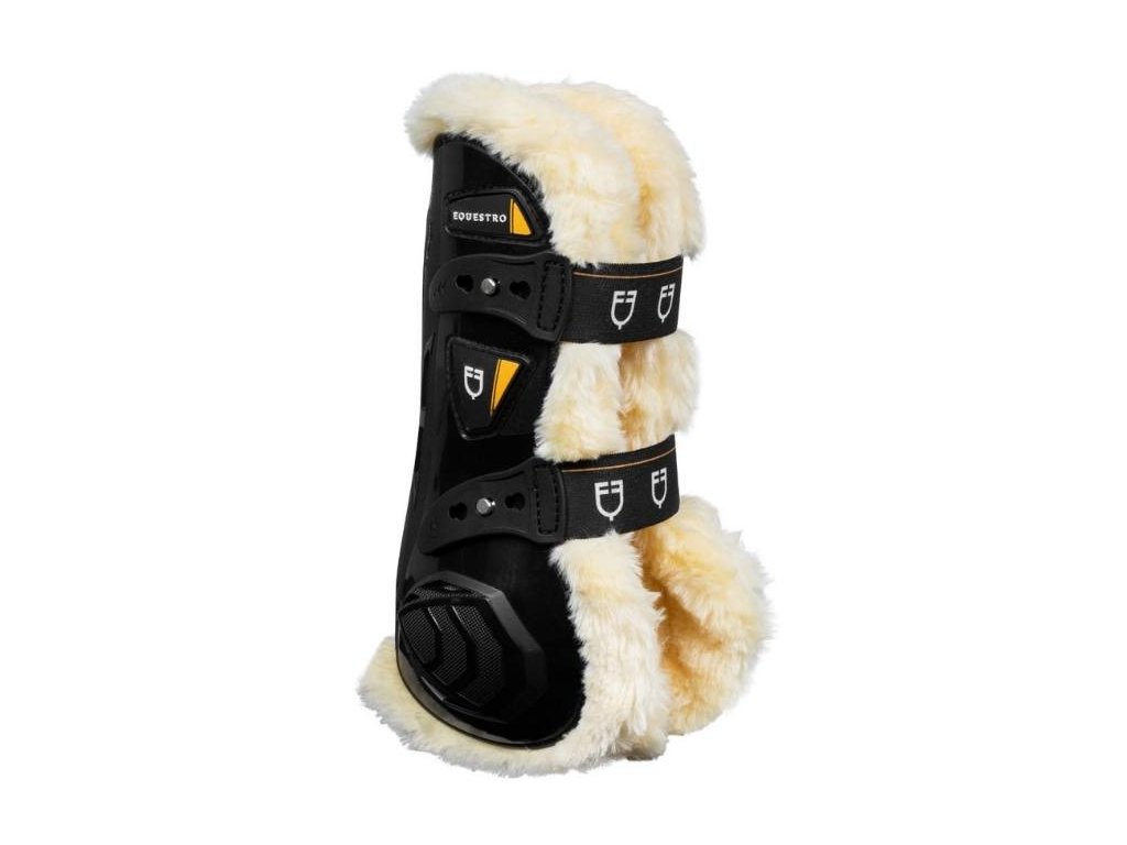 Šlachovky od výrobce Equestro jsou vyrobeny z lehké, ale pevné kombinace neoprenu a polyuretanu a ergonomicky tvarovány tak, aby perfektně přilnuly k anatomii koně, zajišťovaly maximální pohodlí a plnou volnost pohybu. Polstrování ze syntetického beránku je speciálně navrženo pro sportovní využití a podporuje optimální odvětrávání. Kamaše jsou vybaveny elastickými pásky s dvojitým rychloupínacím bezpečnostním zapínáním, snadno nastavitelným podle konkrétních potřeb.