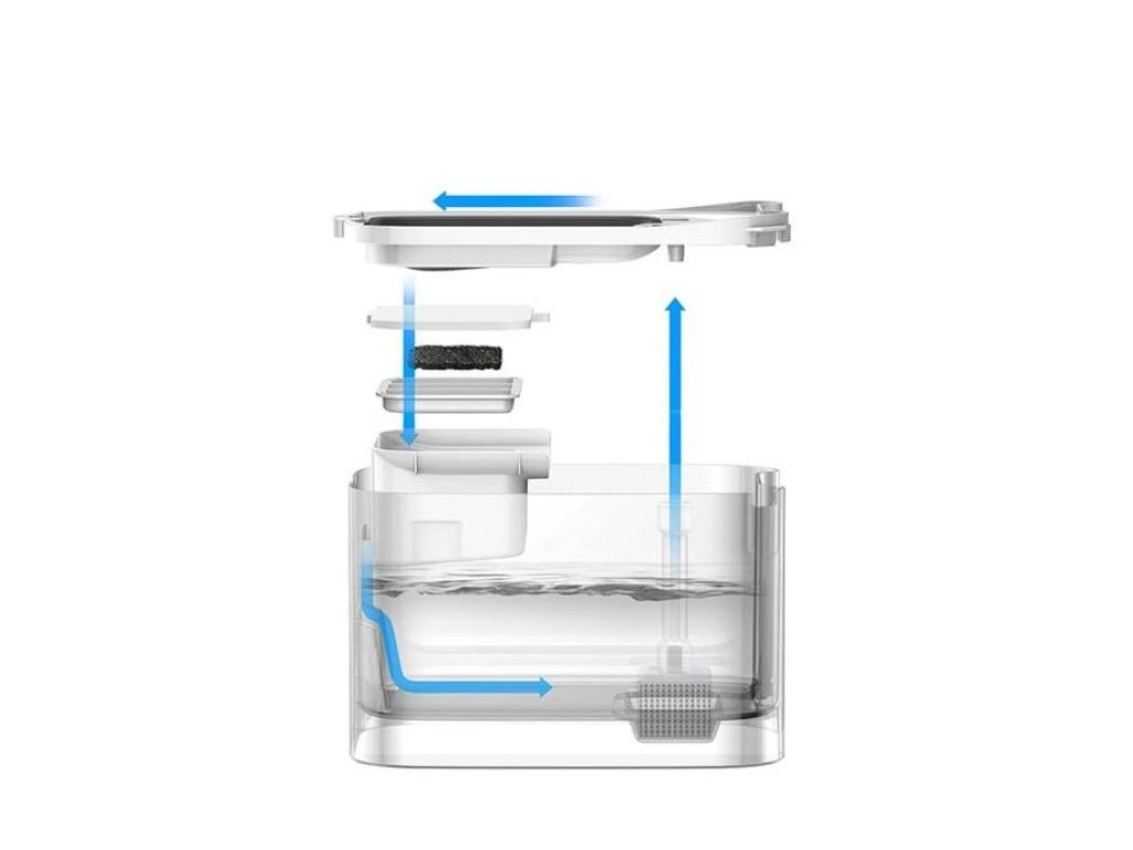 FILTRAČNÍ SYSTÉM: Eversweet Max používá jednostranný filtrační systém, který se skládá ze 3 prvků. Pěnový filtr zachycuje nečistoty, zatímco bavlněná vrstva filtruje zbytky jídla a chlupy. Aktivní uhlí zase odstraňuje pachy a chlór.